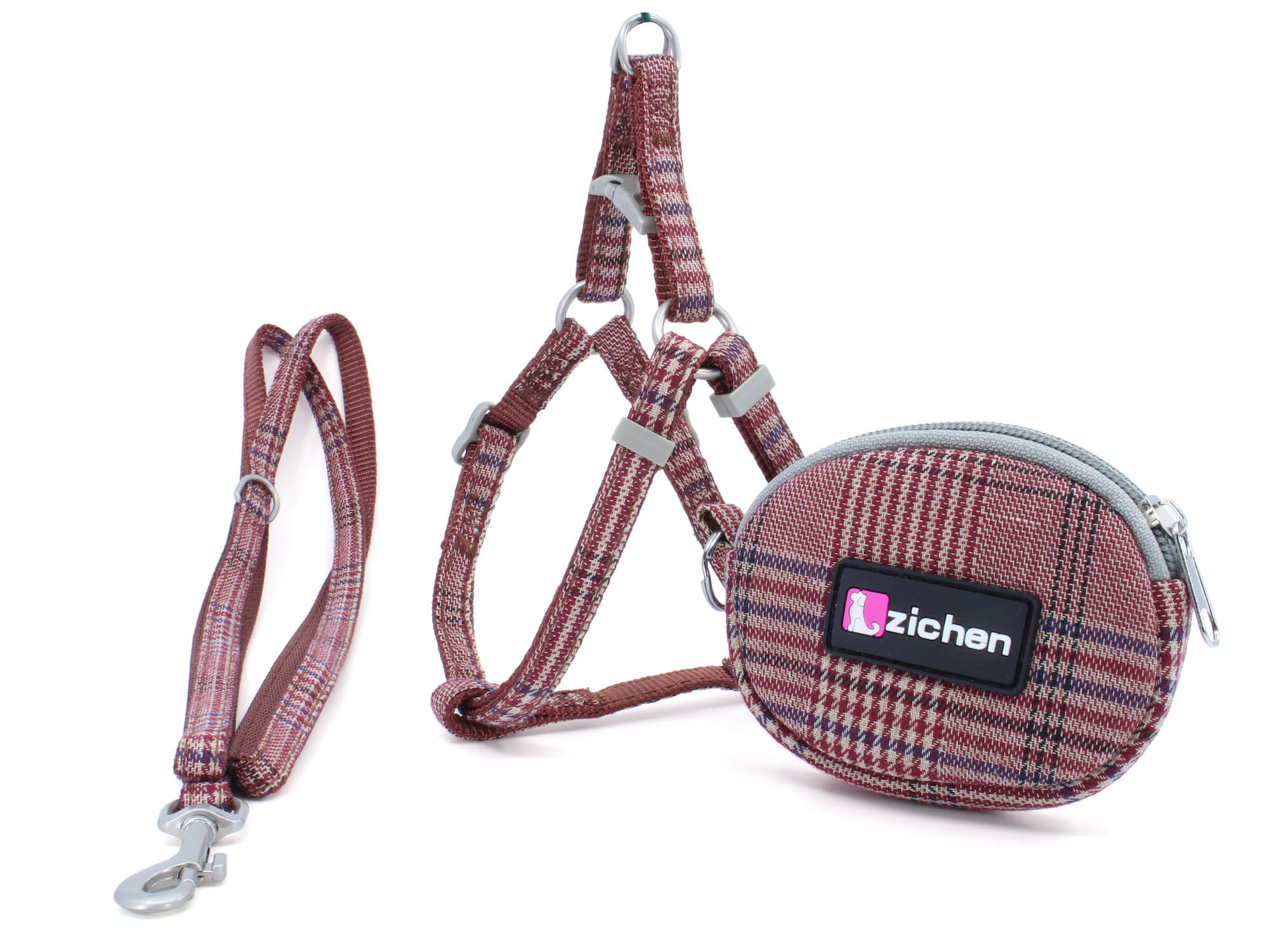 Rychlozapínací postroj pro psa disponuje jednoduchým a rychlým nasazením, jenž se provádí navléknutím přes přední packy mazlíčka. Poté ho jen zacvaknete pomocí plastové přezky a připnete vodítko. Obvod postroje lze nastavit, a to od 33 cm do 57 cm, můžete si jej tedy upravit dle potřeby pro psíka střední i velké velikosti. Sadu tvoří postroj, vodítko o délce 120 cm a kapsička na sáčky (10 x 7,5 cm). Všechny produkty, které sadu tvoří, ladí vzorem i barvami. Postroj dominuje svou šetrností ke zdraví mazlíčka, ten při tahání rozkládá sílu do celého těla a tím zabraňuje nadměrnému přetěžování páteře.