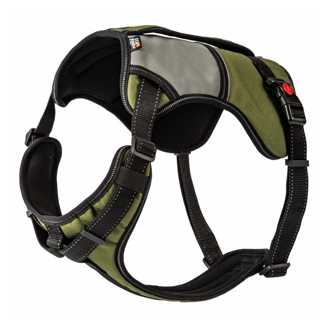 Široká polstrovaná hrudní část postroje je velmi pohodlná a rozděluje tlak rovnoměrně na hrudník psa. Širší hrudní část zajišťuje, že postroj zůstane na svém místě i při aktivitách vyšší intenzity.