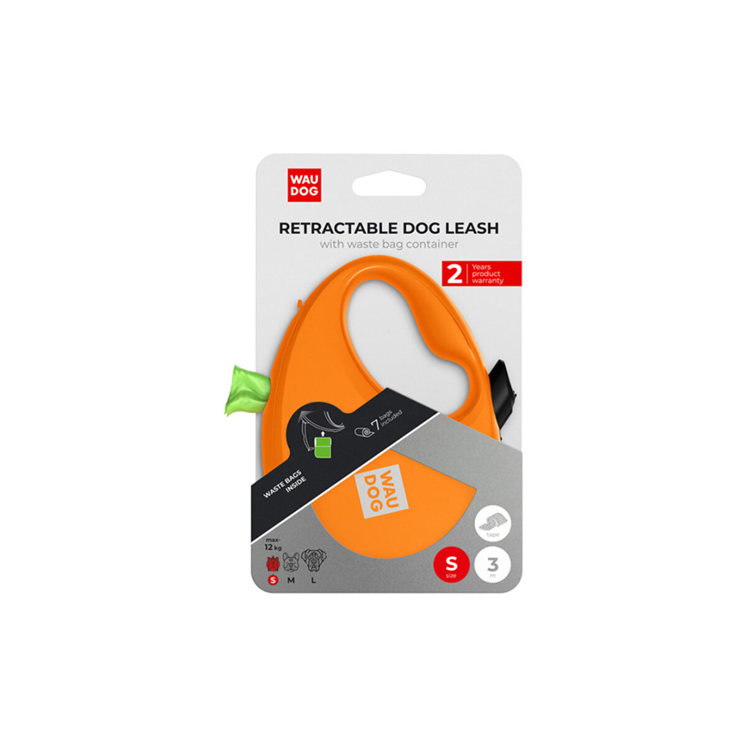 WAUDOG vodítko samonavíjecí se zásobníkem na sáčky Oranžové 12kg/3m/S