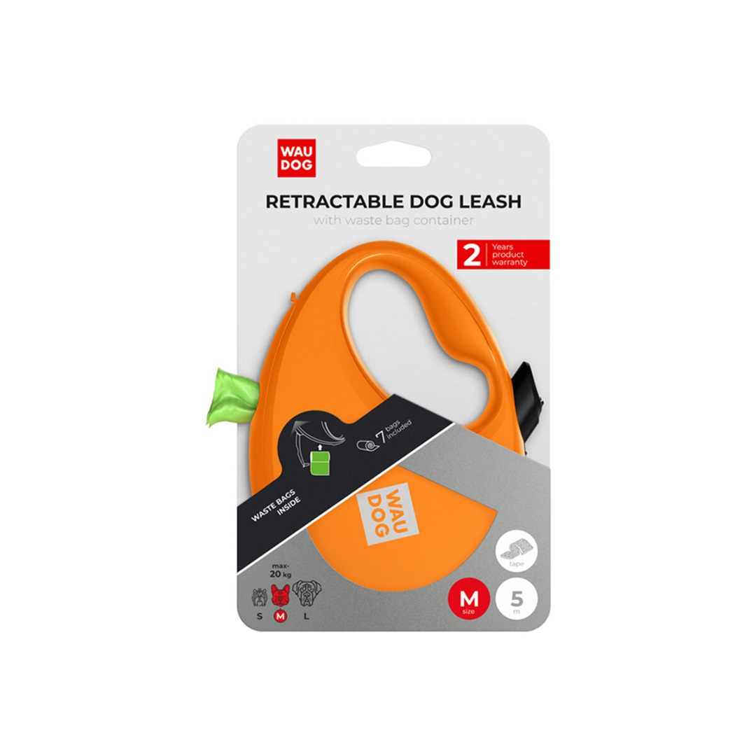 WAUDOG vodítko samonavíjecí se zásobníkem na sáčky Oranžové 20kg/5m/M