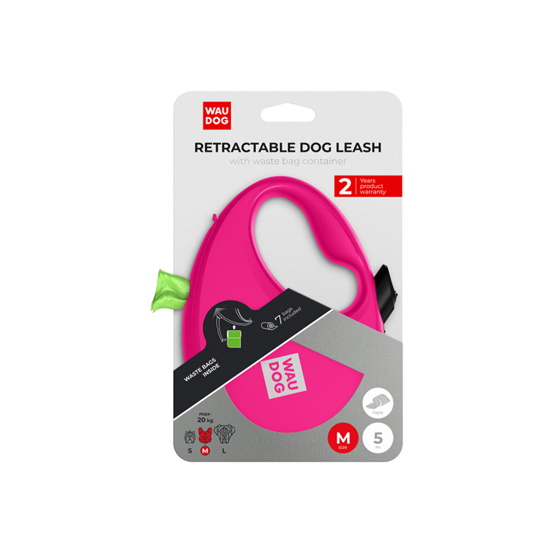 WAUDOG vodítko samonavíjecí se zásobníkem na sáčky Růžové 20kg/5m/M