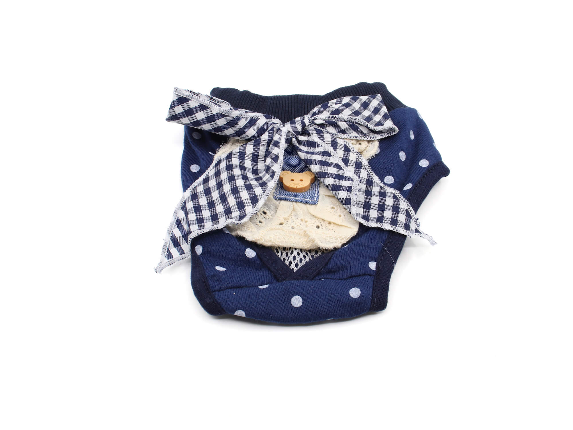 Dodejte své fenečce styl i komfort během náročného období. Hárací kalhotky skvěle sednou malým a středním plemenům. Ochrání Váš interiér před znečištěním a dopřejí mazlíčkům osobitý styl. Kalhotky jsou doplněné vymazlenými puntíky, mašličkou a knoflíkem ve tvaru medvídka.
