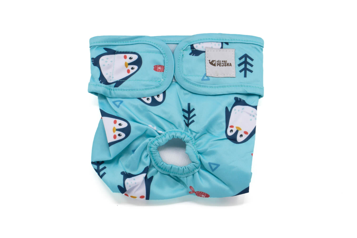 Dusty hárací kalhotky pro psa – vsepropejska.cz Barva: Tučňáci, Obvod slabin (cm): 38 – 64