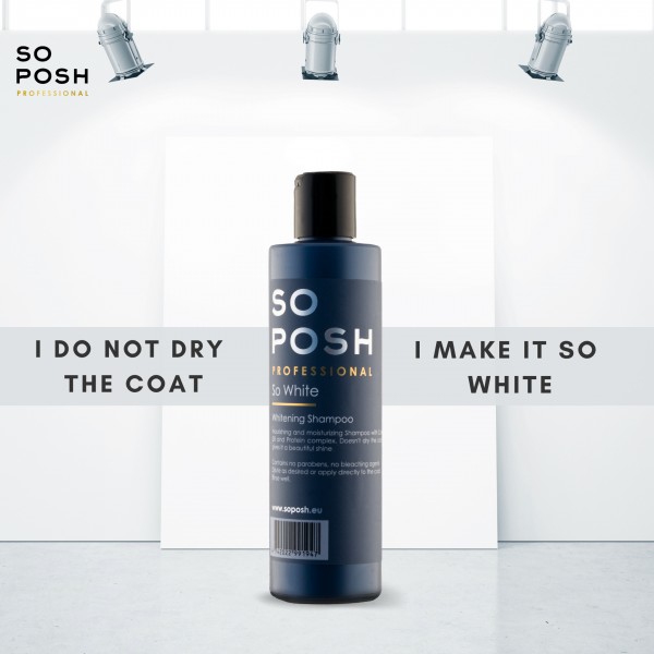 Bělící šampon. Vyživující a hydratující šampon s kokosovým olejem a komplexem proteinů. Nevysušuje srst a dodává jí krásný lesk.