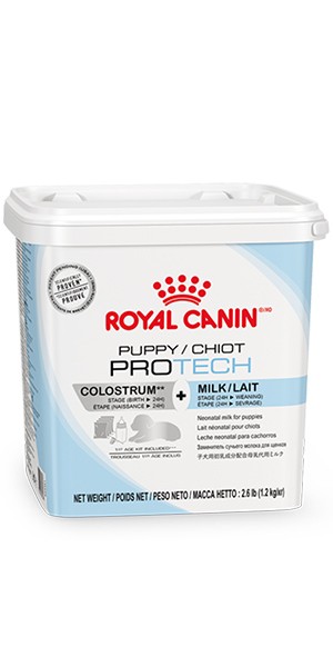Royal Canin VET Care Dog PUPPY PRO TECH DOG PUPPY PRO TECH má zásadní význam pro novorozená šťěňata v prvních 24 hodinách života. Revoluční složení je podobné mateřskému mléku. Obsahuje protilátky proti E. coli a parvoviru pro podporu specifické systémové imunity, maltodextrin pro adekvátní hladinu krevního cukru, DHA pro rozvoj kognitivních funkcí a prebiotika pro zdravé trávení. Lze jej podávat až do věku 3 týdnů.
