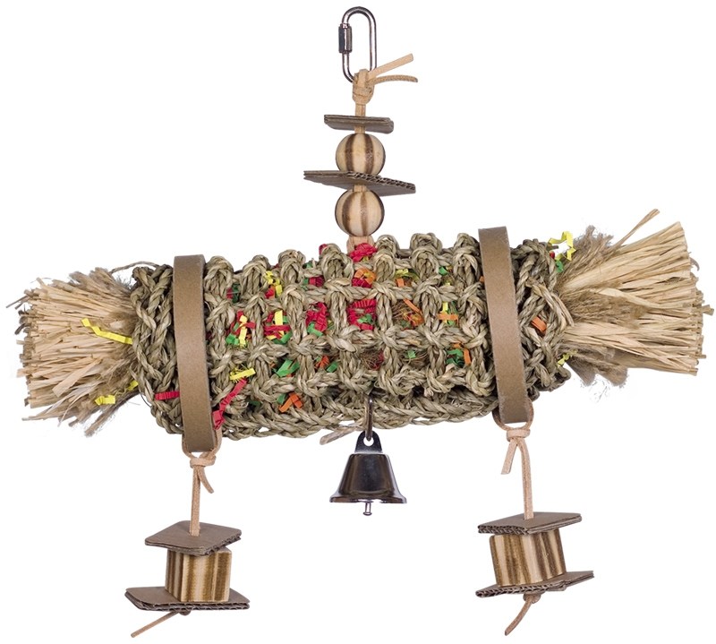 Aktivní hračka Nobby pro papoušky a andulky vyrobená (upletená) z mořských řas. Zábavný doplněk do klece. Velikost 29 x 33 cm, Ø 9 cm. Dřevěné, kartonové a kožené doplňky se sisalovými nitěmi.