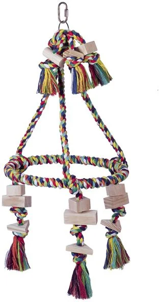 Pevná bavlněná pyramida Nobby pro střední papoušky (žako, amazoňan, Eklektus, malé druhy Aru apod.) Rozměry: výška 59 cm, průměr kruhu 30 cm.