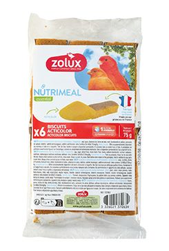 Doplňkové krmivo pro domácí ptactvo, sušenky acticolor.Vyrobeno ve FranciiFSC® certifikovaný papírový letákProdukt s označením 1% pro zvířata Složení: vejce, cukr, pšeničná mouka, kukuřičná mouka, tekutý med, hydrogenuhličitan sodný, uhličitan vápenatý.