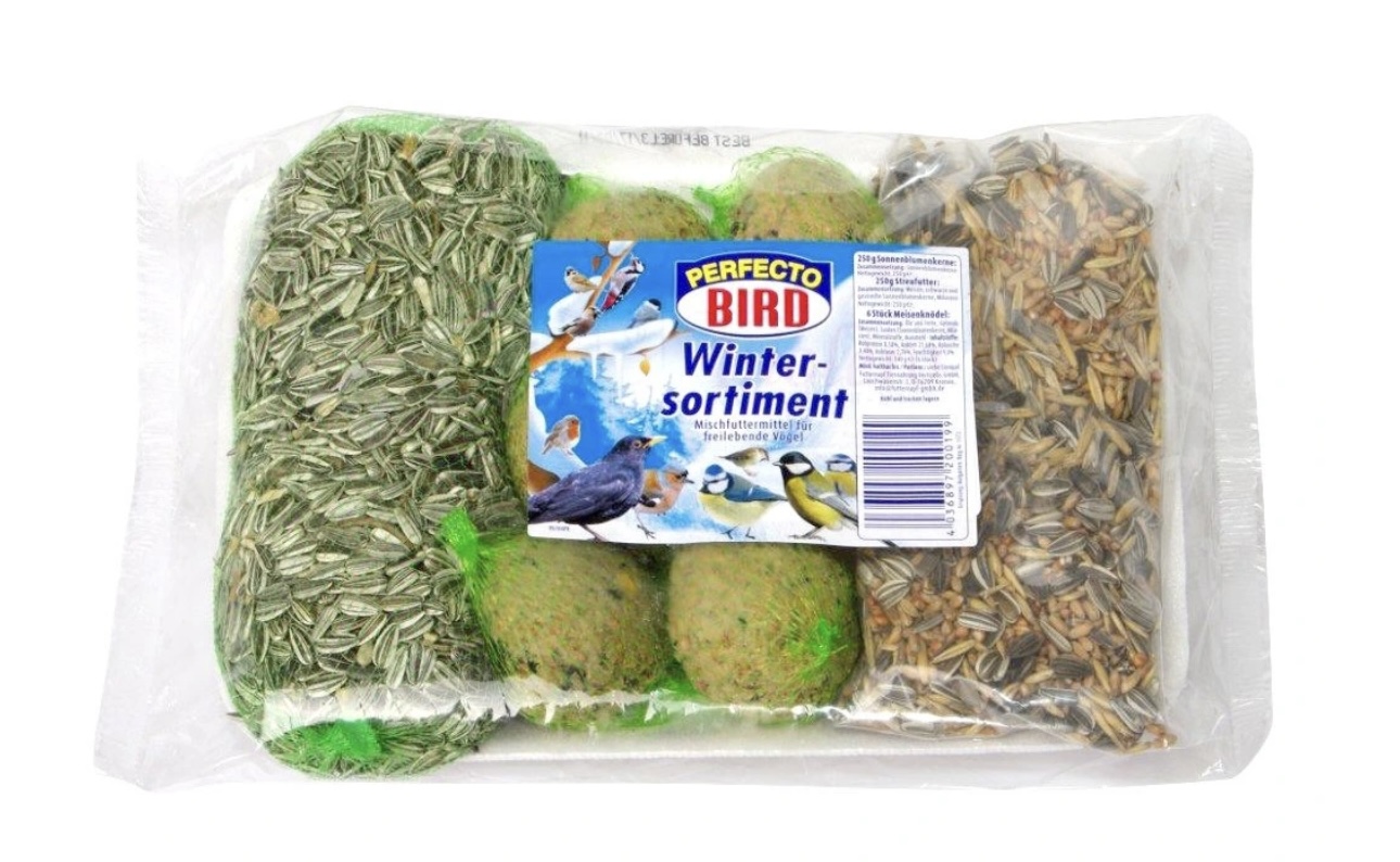 Obsahuje slunečnivová semínka, zimní krmnou směs a 6 kusů lojových koulí.