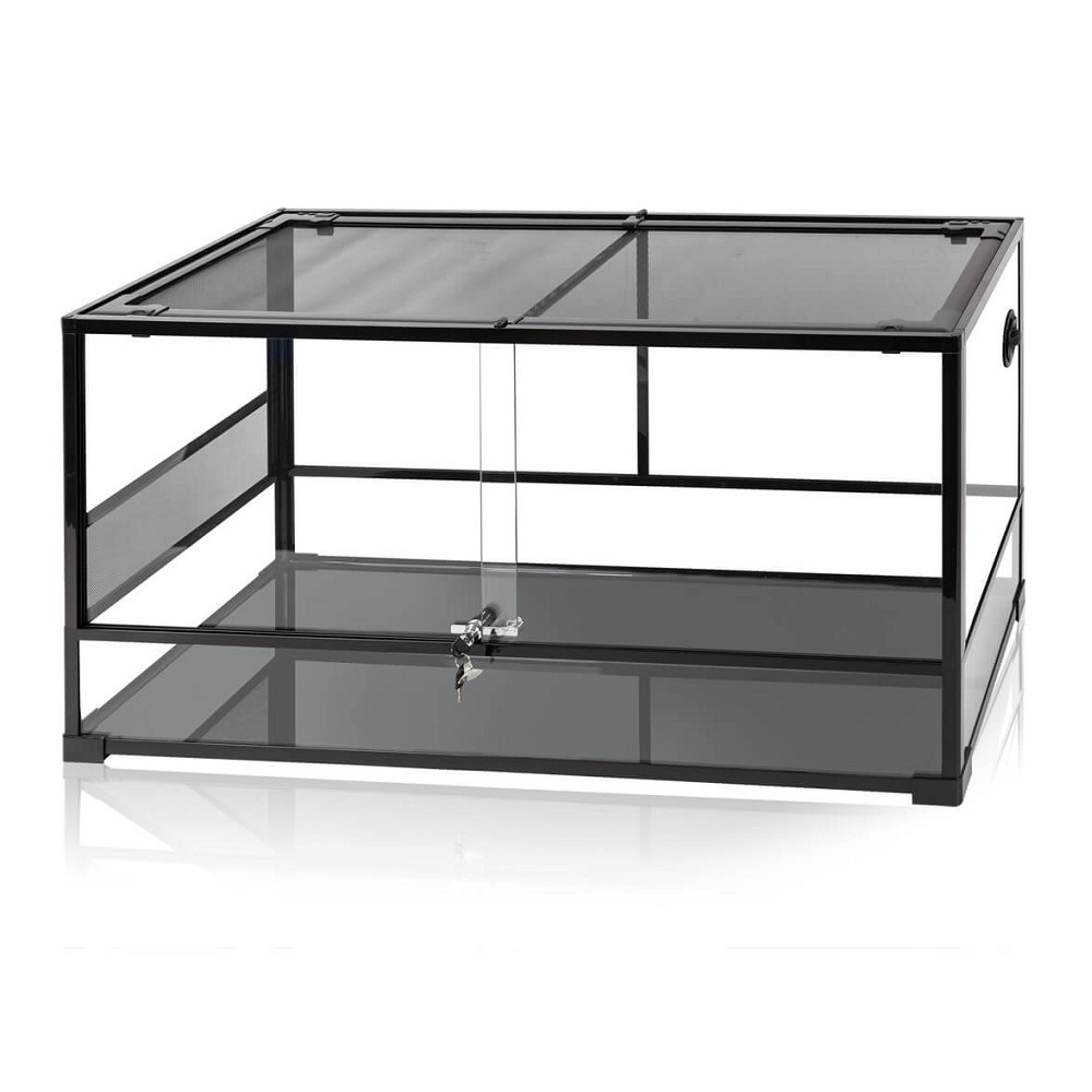 Rozložení terária umožňuje snadné skladování a přepravu. V přední části naleznete skleněná posuvná dvířka pro snadnou údržbu. Dvířka disponují zámkem proti nechtěnému otevření. Horní kryt je z ocelové síťky pro snadný průnik světla a tepla, boční stěny jsou skleněné se vsazeným odvětrávacím mřížkovým panelem, zadní stěna a dno jsou skleněné.