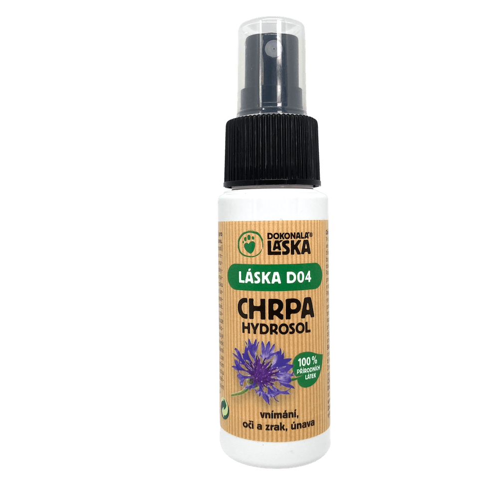 Hydrosol (květovou vodu) chrpy zvířata milují, když hledají: Podporu vnímání, úlevu při šedém zákalu, posílení kondice oka, vzpruhu při ospalosti a únavě, regeneraci po chirurgickém zákroku. Chrpa se v Evropě dá získat jen na dvou místech ve Francii. Je velmi ceněná a velmi drahá. A také velmi účinná. Chrpa podporuje regeneraci a rekonvalescenci, dodává sílu, buduje vitalitu. Pomáhá posílit kognitivní funkce u stárnoucích zvířat nebo u vysílených sportovců, kteří se mentálně namáhají. A především podporuje  regeneraci odumírajících očních buněk, které postupně s věkem degradují. Hydrosol chrpy můžete nastříkat třeba na tamponek a přiložit na oko . Nebo ho nechat neomezeně olizovat a konzumovat tento přípravek . Šedý zákal to úplně nevyléčí, ale podstatně ho to zpomalí. Hlavní přínos: Posílení vnímání, podpora rekonvalescence, kondice zraku a oka. Účinky hydrosolu z chrpy si chválí také lidé. Působí relaxačně na kůži a pleť, zmenšuje otoky, urychluje hojení. V případě zájmu, máme k dispozici na objednávku i 100 ml a 200 ml balení. Prosím kontaktujte nás na tel.: +420 607 123 301, nebo emailu objednavky@dokonalalaska.cz .