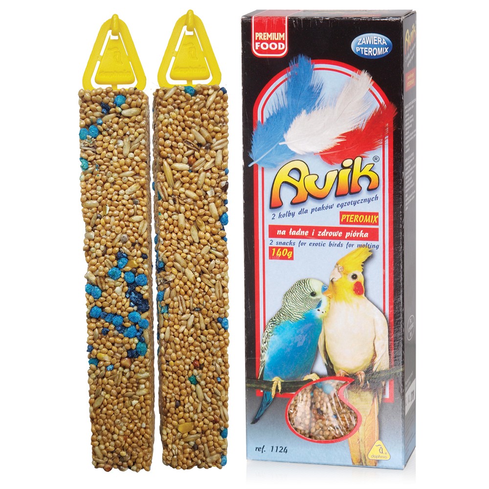 Avik tyčinka s Pteromixem je doplňkové krmivo vyvinuté speciálně pro exotické ptactvo v citlivém období přepeřování. Díky unikátní NGP technologii je zajištěno optimální proudění vzduchu mezi zrny, což zabraňuje drobení a prodlužuje čerstvost i biologickou aktivitu produktu.