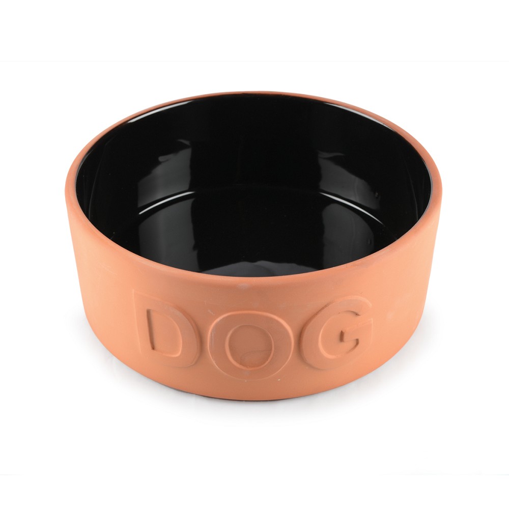 Bytelná hliněná miska pro psy v neotřelém, rustikálním stylu.