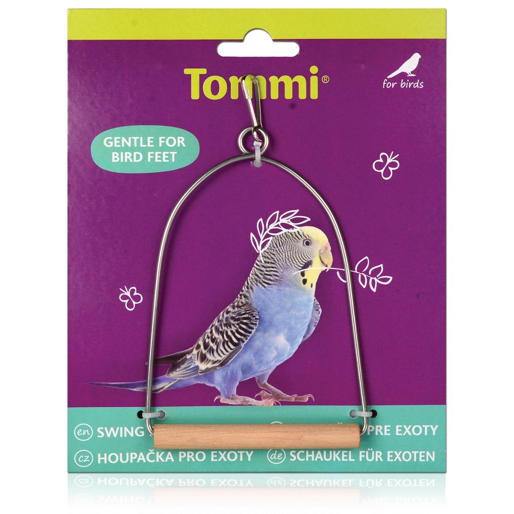Houpačka pro malé exotické ptactvo, dřevo + kov