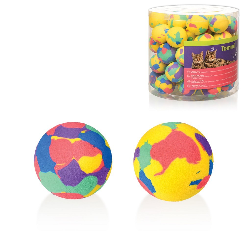 Hračky pro kočky - duhový míček mechová guma, mix barev, tubus 60ks