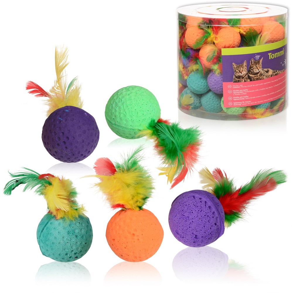 Hračky pro kočky - pěnový míček s peřím, 4cm