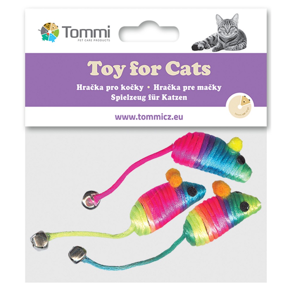 Hračky pro kočky – duhová myš s rolničkou pro kočky, 3ks/sáček
