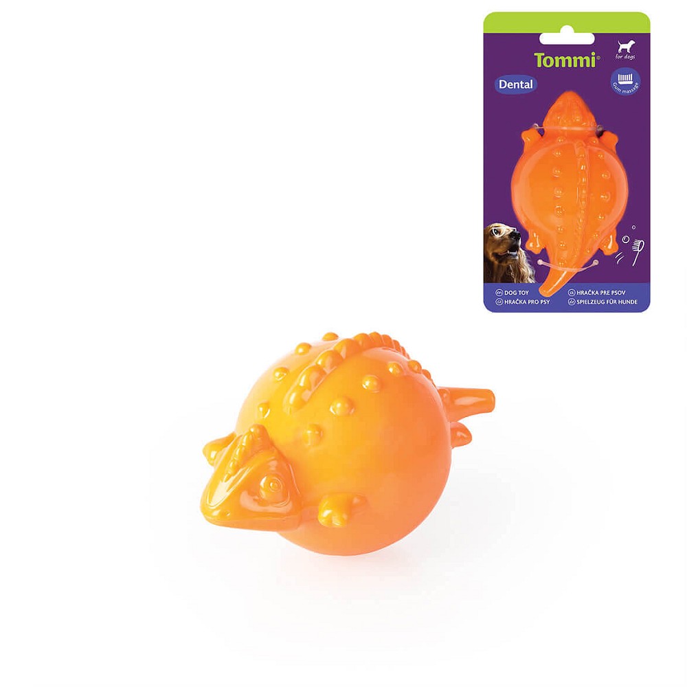 Pískací hračka pro psy z měkké gumy. Slouží ke kousání, díky výstupkům také k masáži dásní vašeho pejska.
