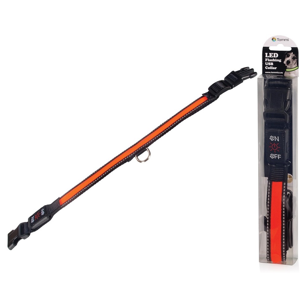 LED obojek dobíjecí USB/vel.L 50-60cm/ oranžový 02477