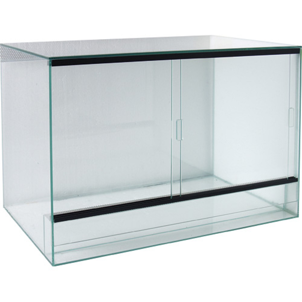 Skleněné terárium pro gekončíky, ropuchy, pavouky, oblovky a jiné drobnější živočichy. Terárium je vybavené šoupacími dvířky a větrací mřížkou.