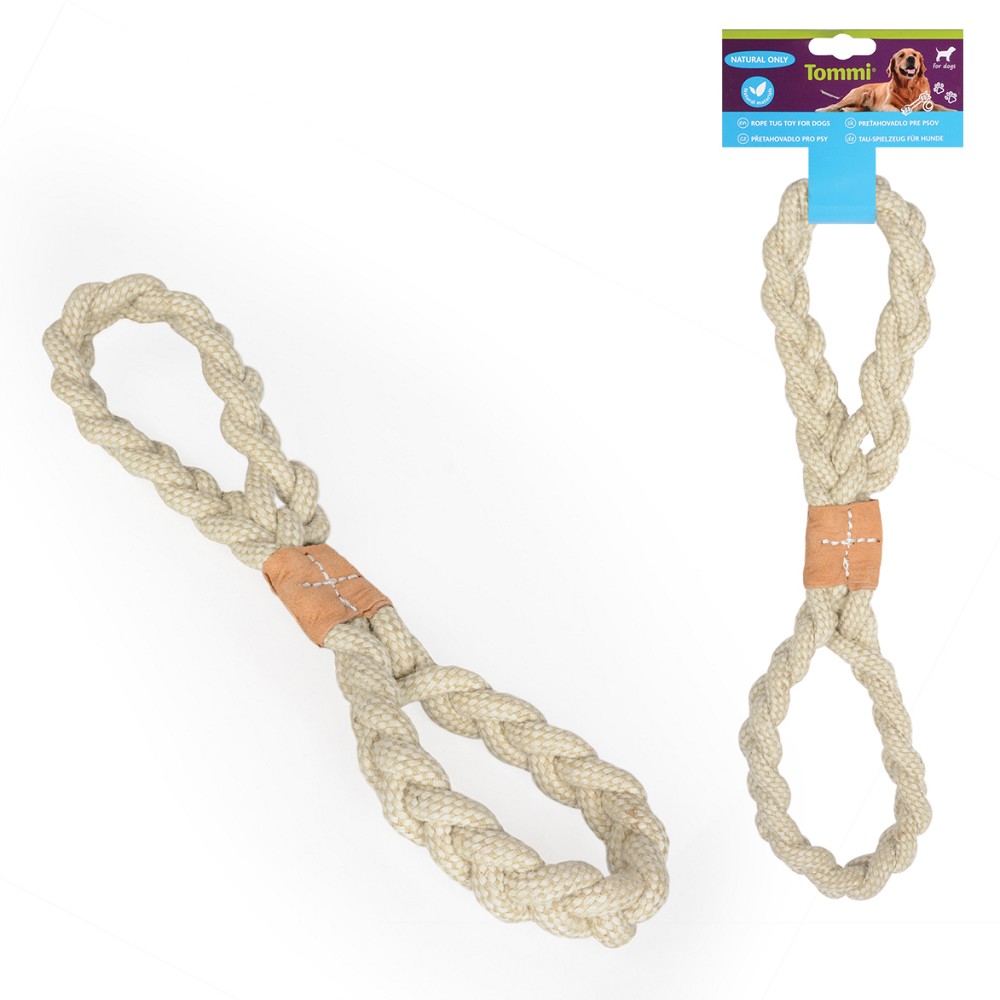 Pevně splétané přetahovadlo pro psy z přírodních materiálů.