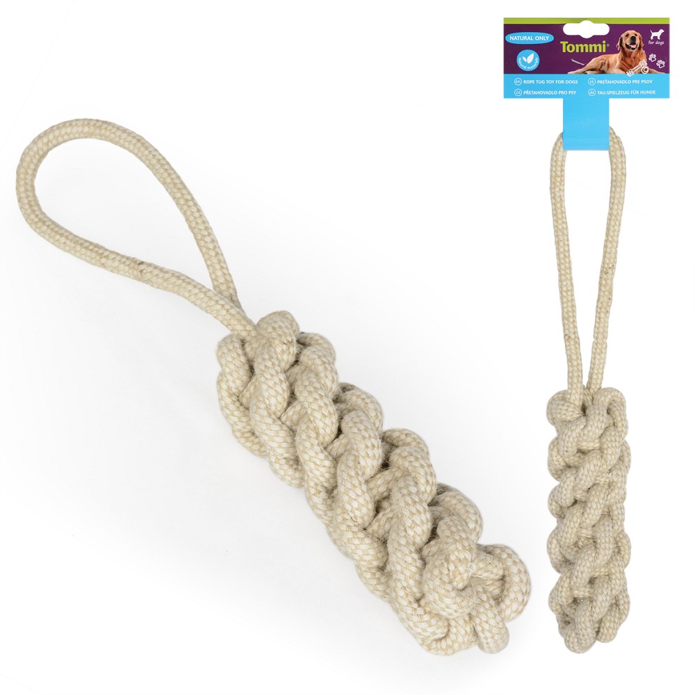 Pevně splétané přetahovadlo pro psy z přírodních materiálů.