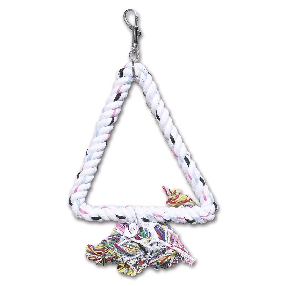 Chovatelské potřeby – bavlněná hračka triangl – hračka pro střední a velké papoušky. Pevná bavlna odolá i klování velkým zobákem.