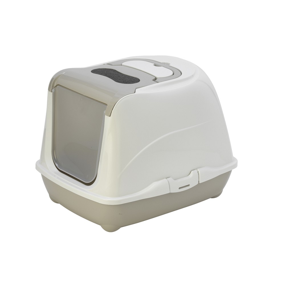Krytý design s dvířky: WC FLIP CAT Large je vybavena polopropustnými dvířky, která umožňují vaší kočce snadný přístup a zároveň zamezují šíření nepříjemných pachů. Krytá konstrukce navíc zajišťuje větší soukromí pro vašeho mazlíčka.