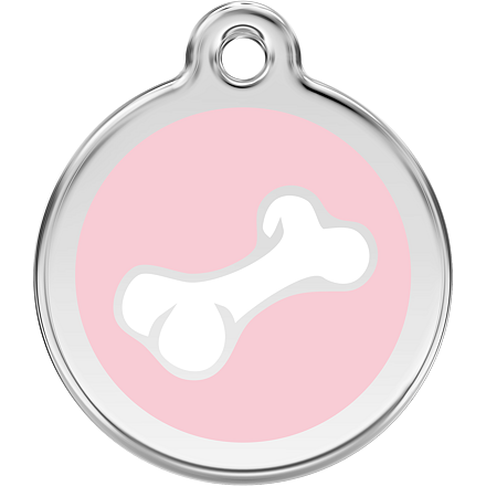 Identifikační známka z nerezové oceli s motivem kostičky v růžové barvě. Praktický a originální doplněk pro psy a kočky, který zajistí jejich bezpečí při každodenních procházkách i na dlouhých cestách.