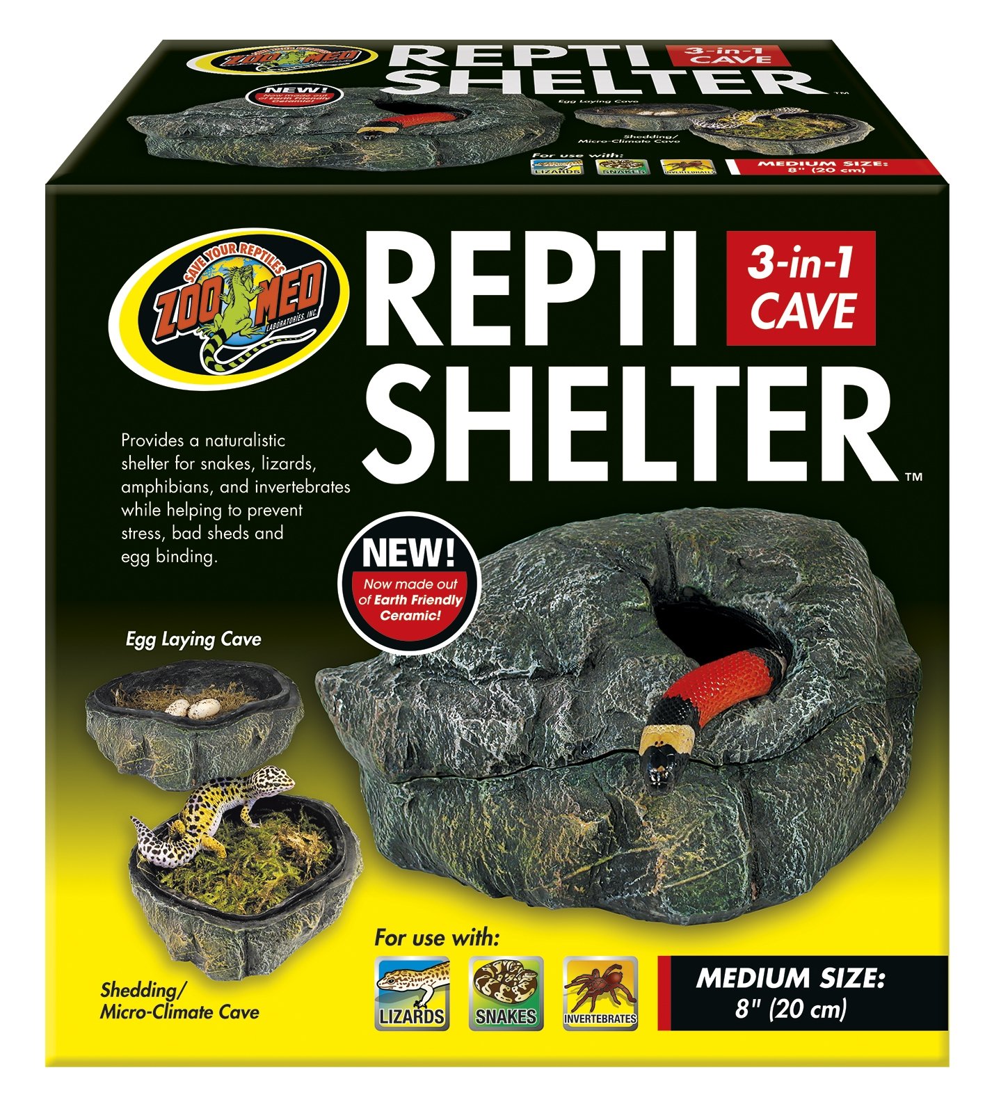 Jeskyně 3 v 1 může být vyplněná terarijním mechem nebo jinou terarijní vystýlkou, aby poskytla vlhké mikroklima pro vylučování, úkryt, nebo snášku vajec.